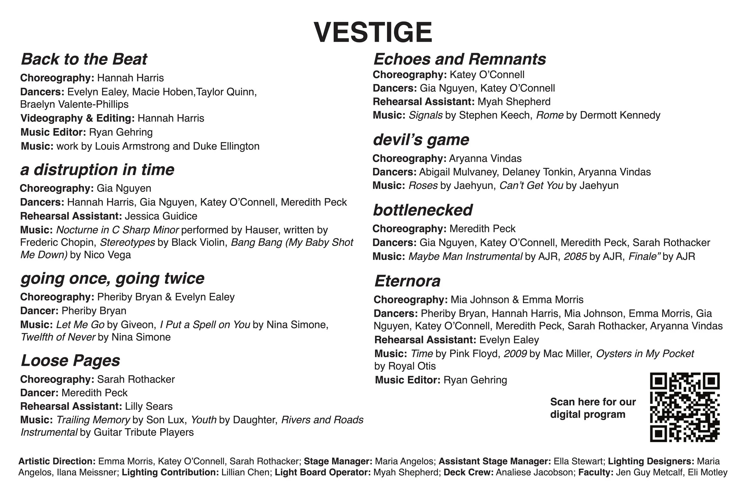 Choreography by Sarah Rothacker, Danced by Meredith Peck Choreography by Meredith Peck View our digital program here
